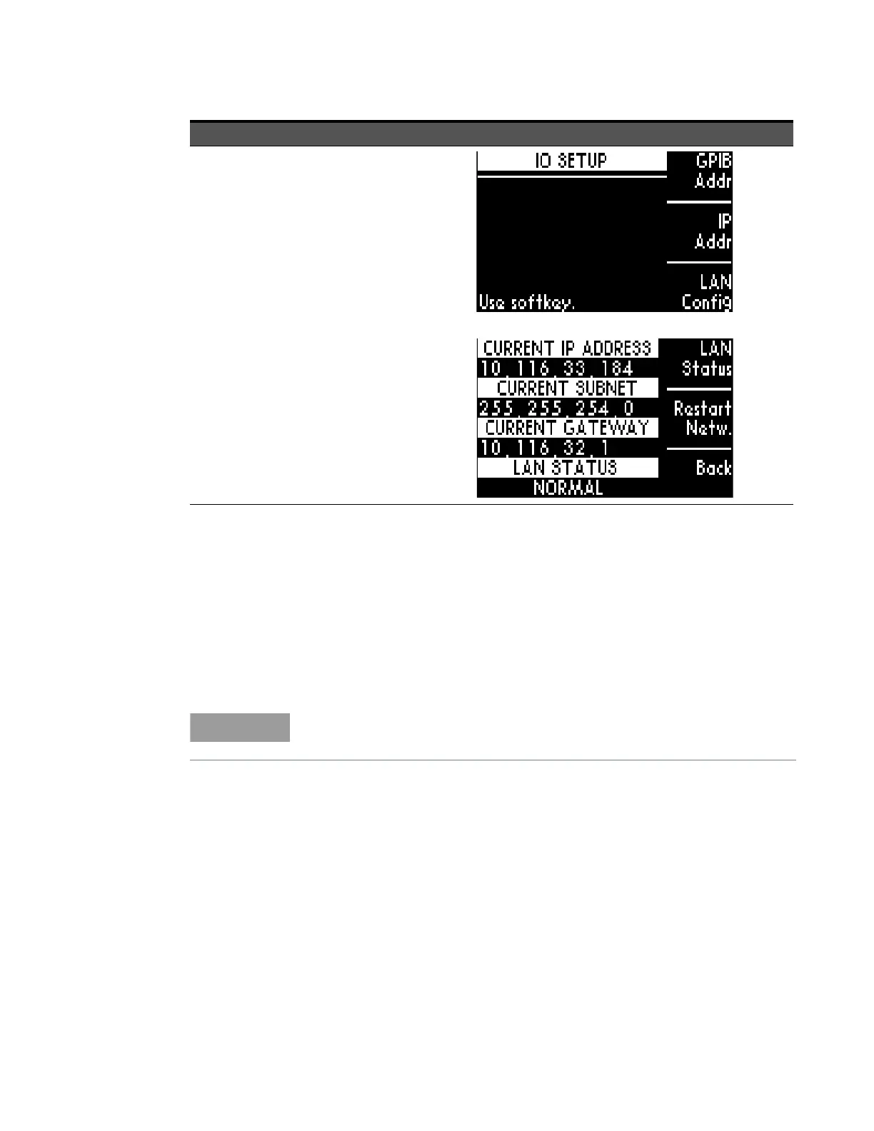 b At IP ADDRESS screen, select LAN