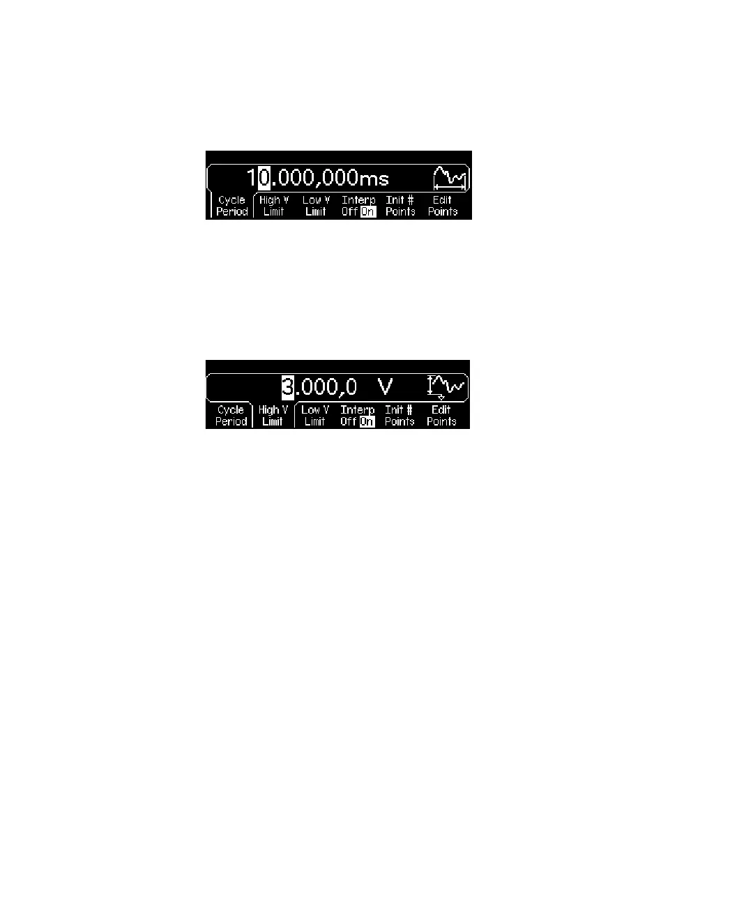 the first point to create a continuous waveform. Press the Init # Points softkey