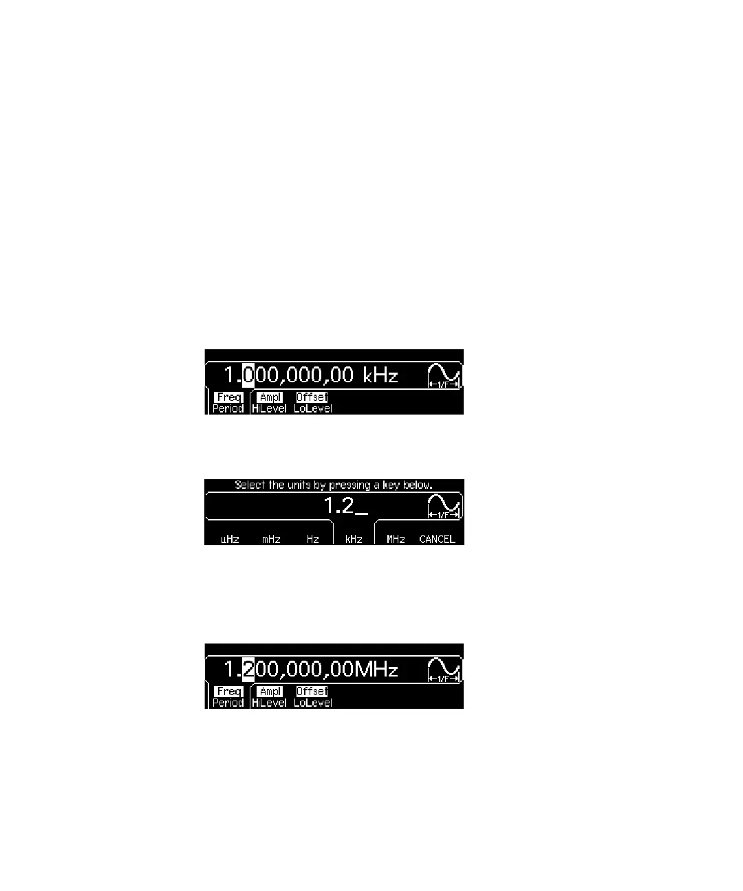 units, the function generator outputs a waveform with the displayed frequency