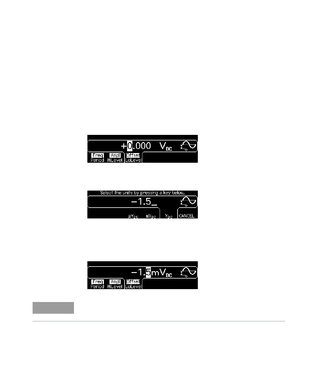 At power-on, the function generator outputs a sine wave with a dc offset of 0 volts