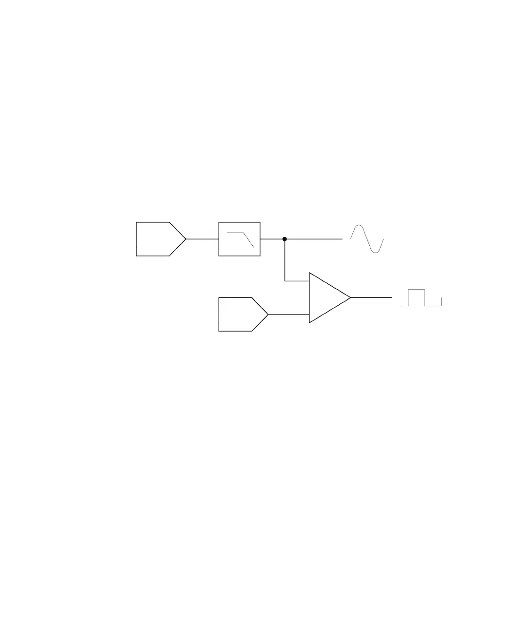 waveforms are created by routing a DDS-generated sine wave into a comparator.