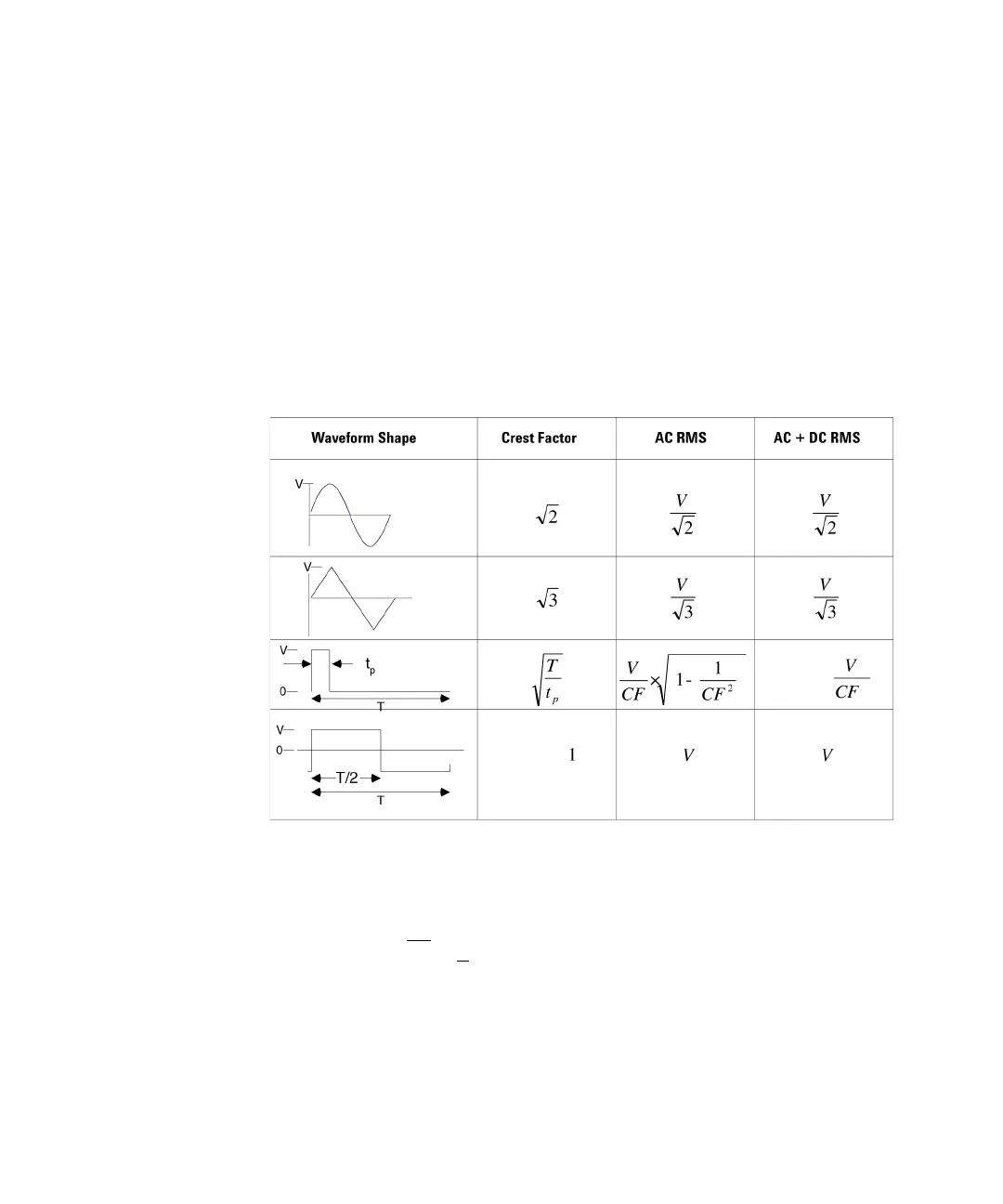 waveform are measured (dc is rejected). As seen in the figure above; for sinewaves,