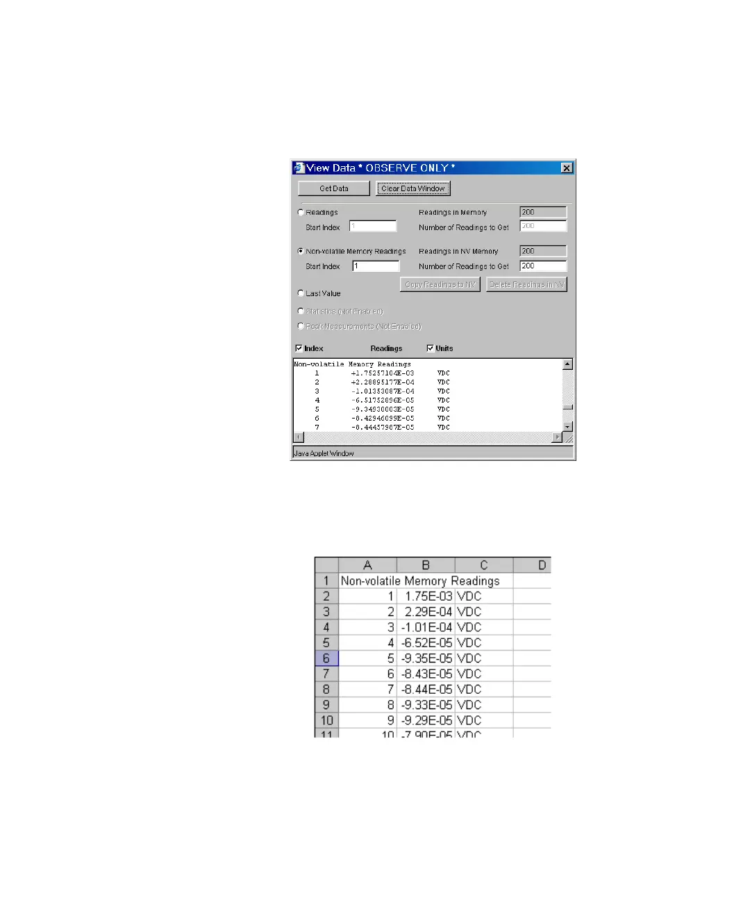 Now click on View Data. In the dialog, select Non–volatile Memory Readings and then