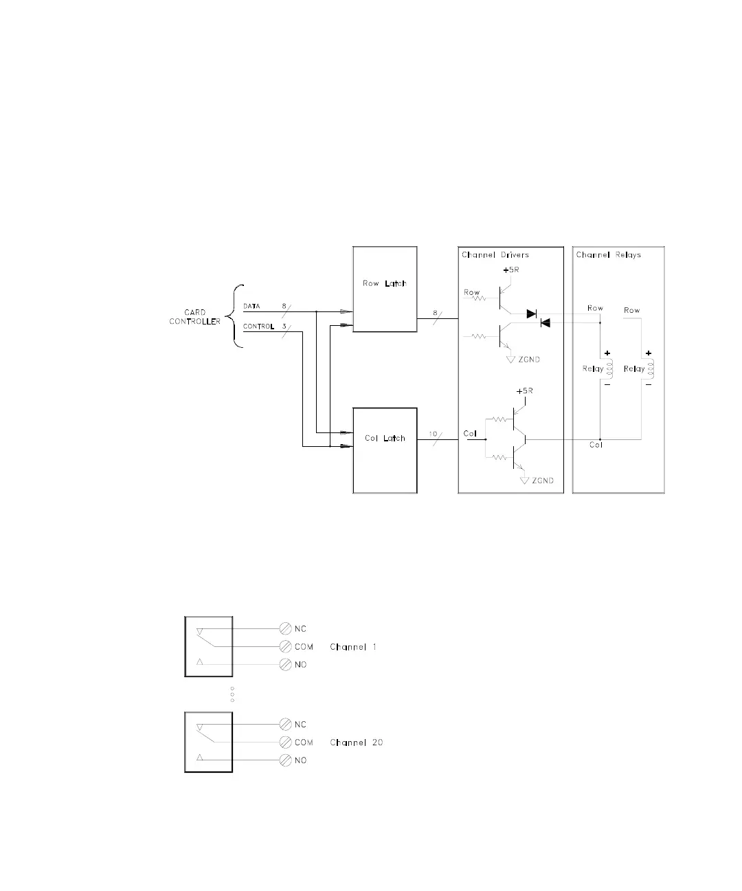column drivers each controlling two relays.