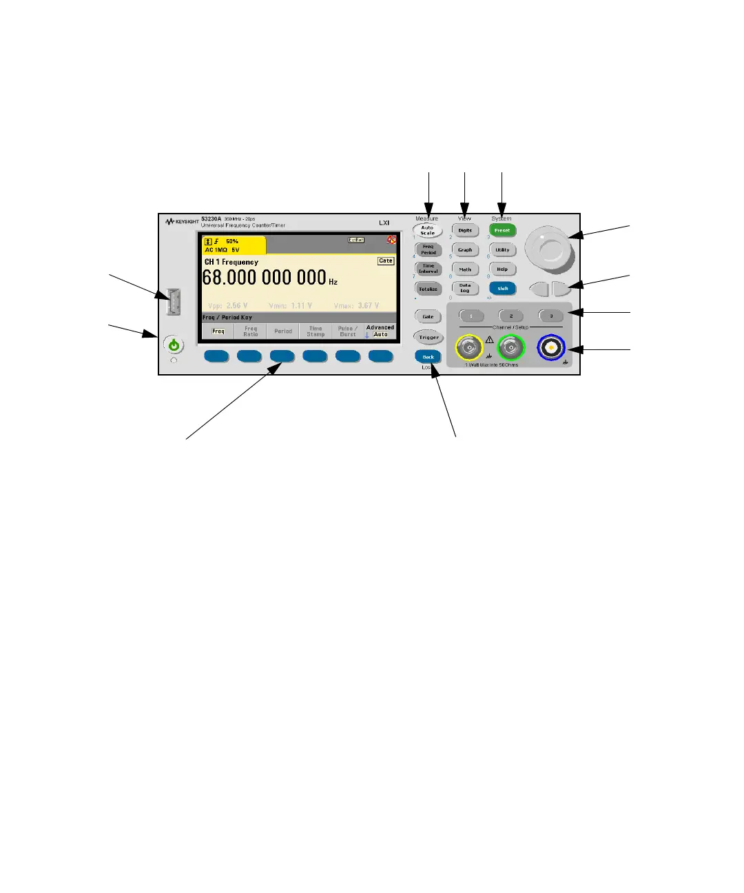Keysight Technologies 53220A - Figure 2-1 the Front Panel at a Glance
