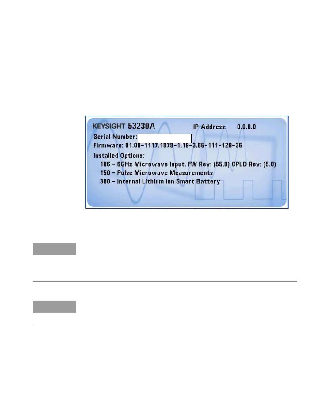 – Keysight Model Number and counter Serial number