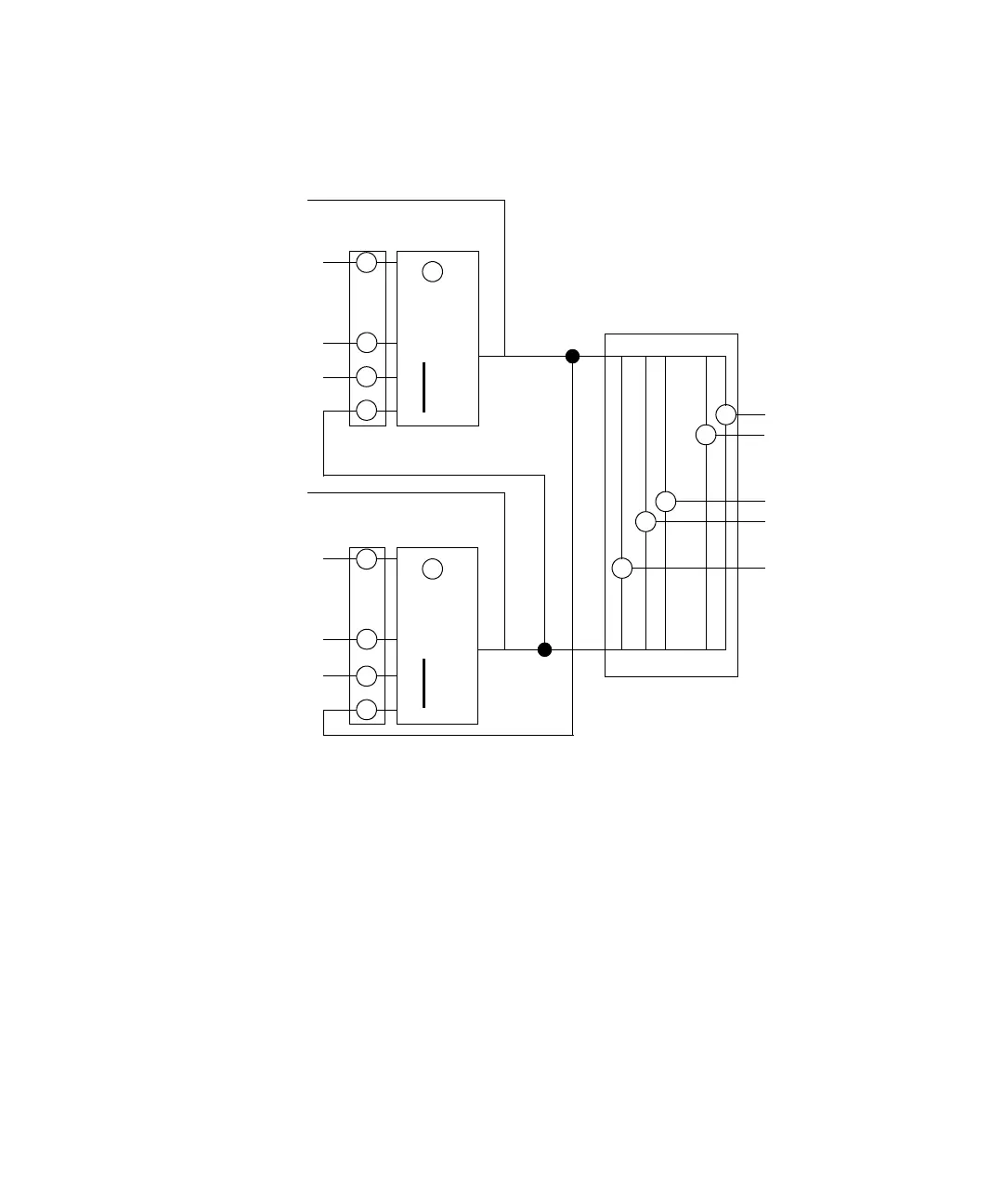 Bits set in Output Matrix Configuration determine whether Node A OR Node B triggers particular