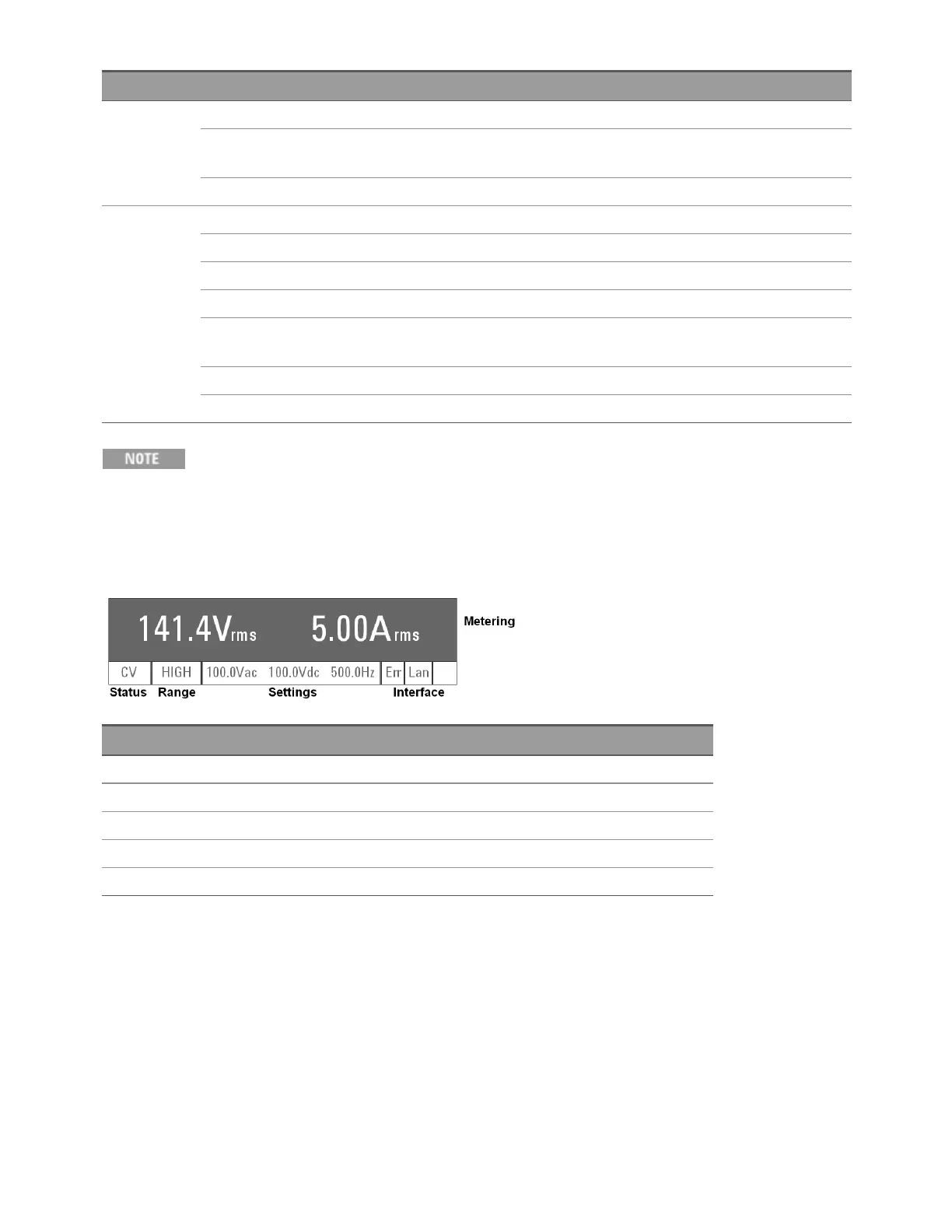 [Voltage] Opens the VAC or VDC (depending on output coupling mode) Settings fields in the Metering Mode