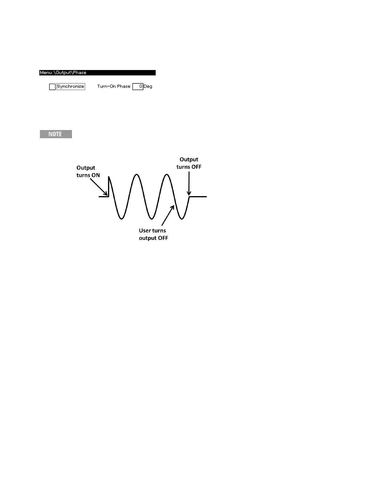 To select the output-on starting phase for AC output at turn-on, select [Menu]>Output>Phase.