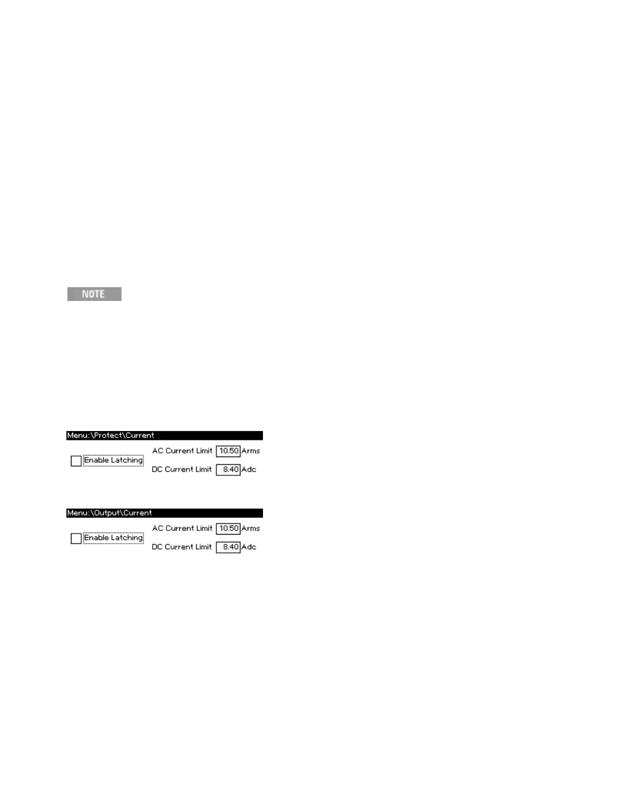 average DC current or RMS AC current than the programmed limit, or if the unit attempts to draw