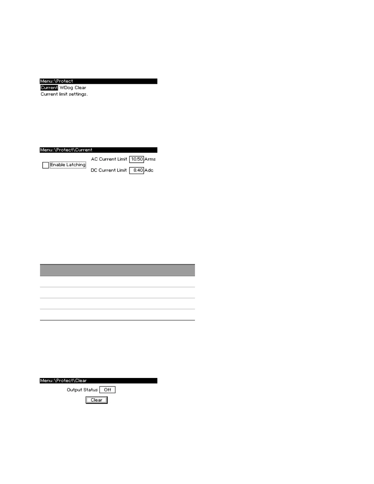 To clear an overcurrent protection condition, select [Menu]>Protect>Clear.