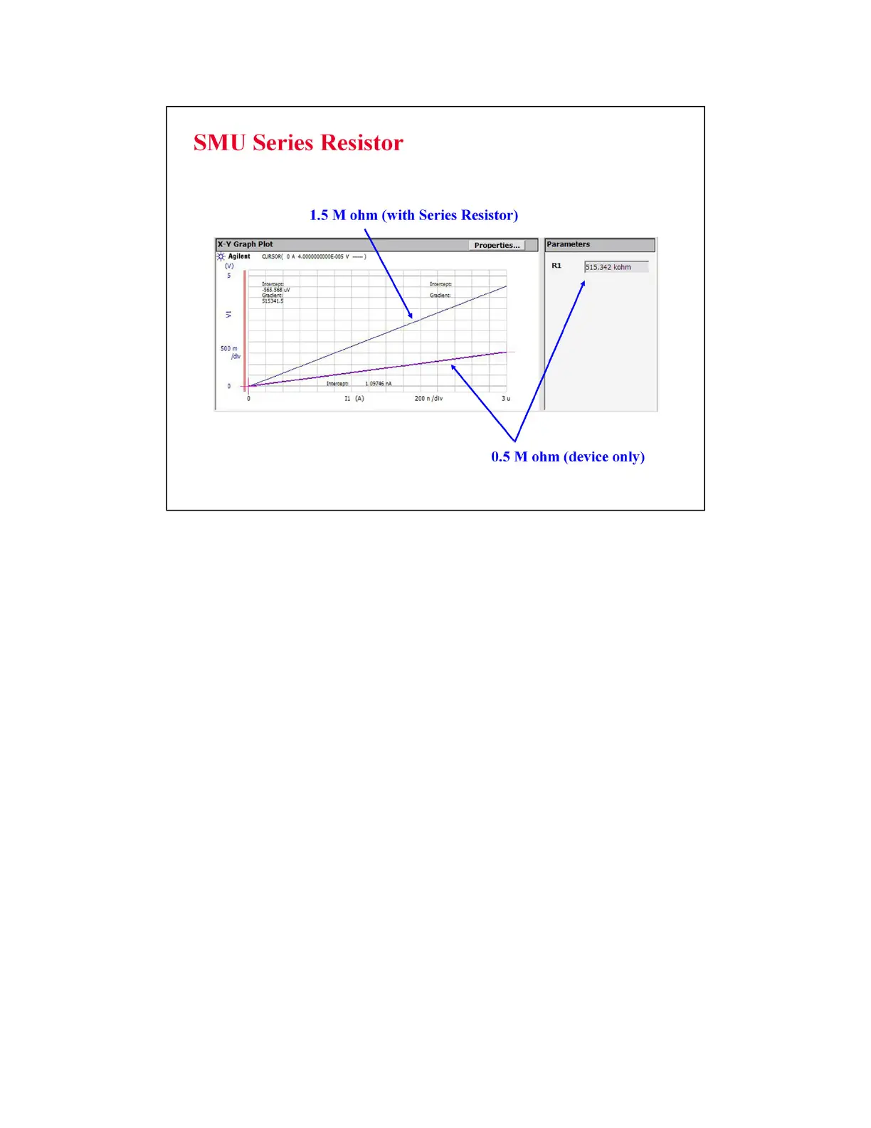 By setting the SMU series resistor, the measurement result shows about 1.5 M ohm characteristics.