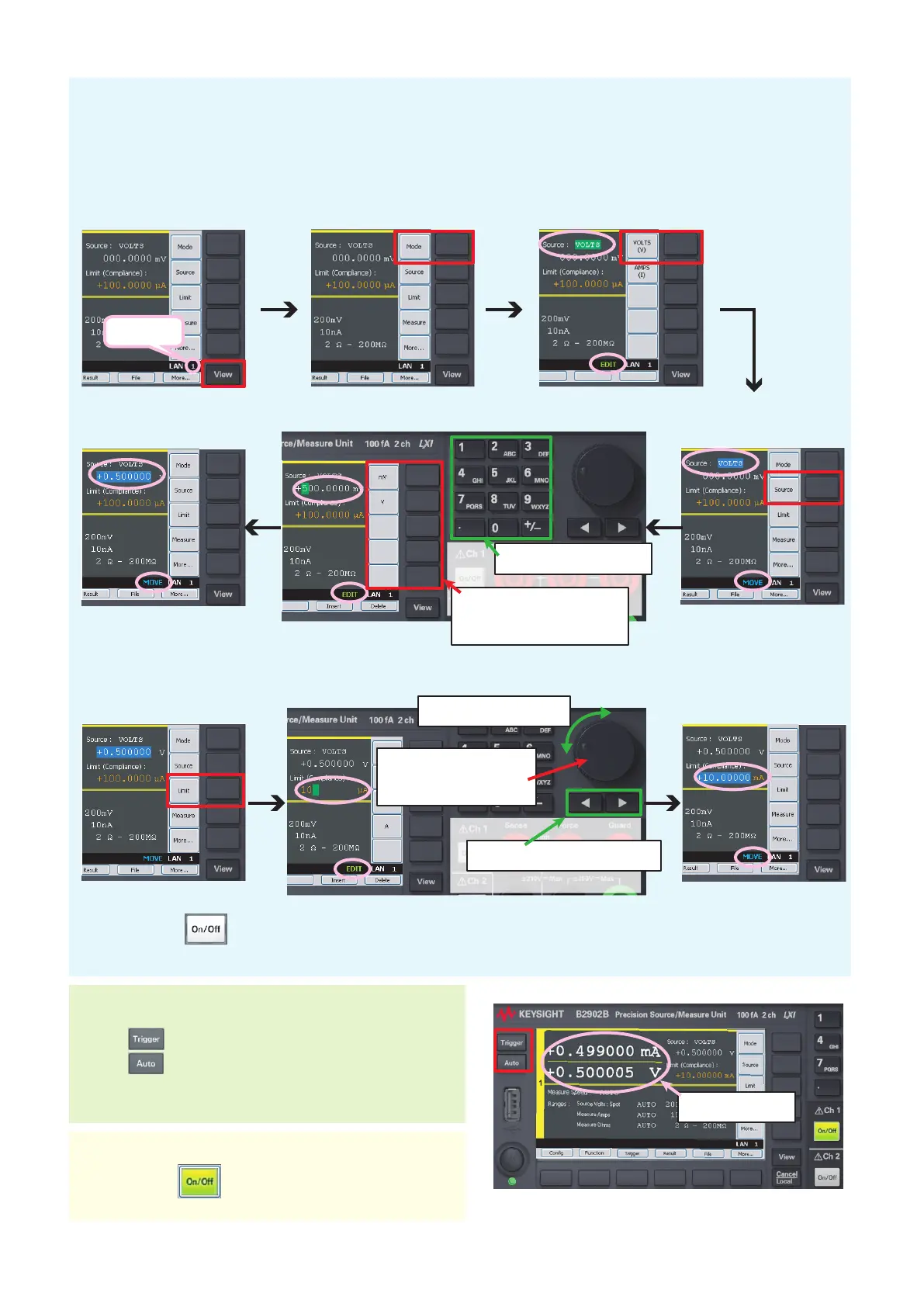 B2900 applies a constant voltage of +500 mV by the following procedure.