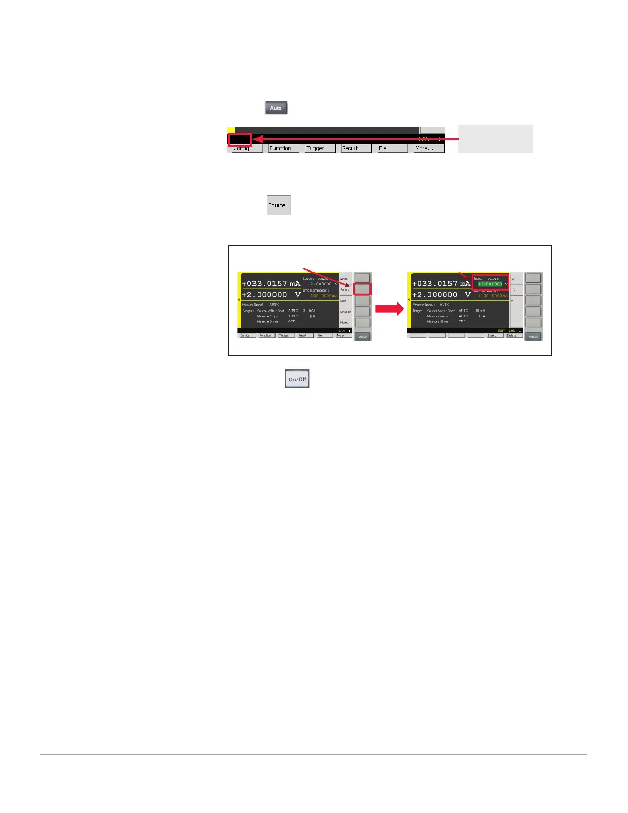 a. Press to edit Channel 1 Source value, and then enter 0 V to set