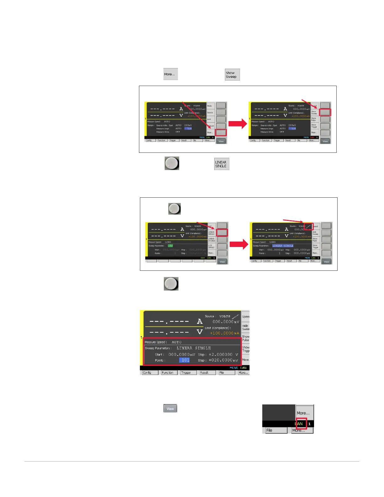 (1) Press More… (2) Press Show Sweep