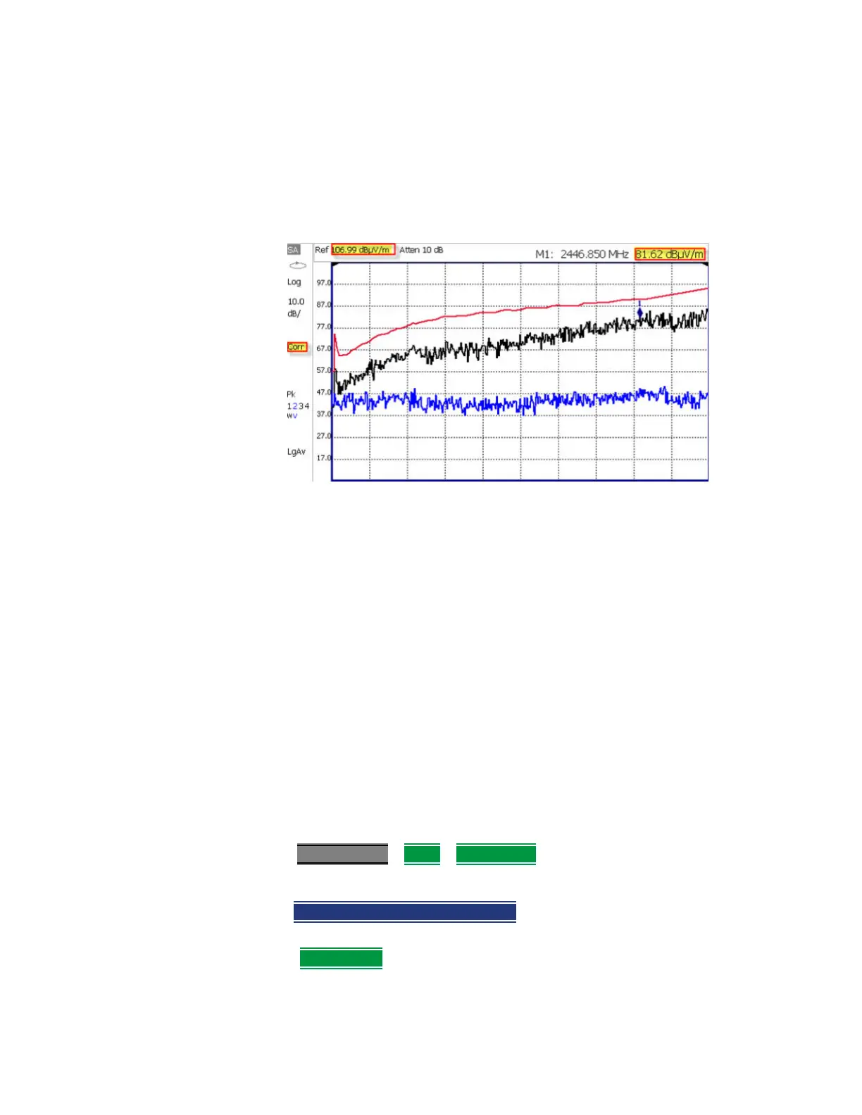 Trace 1 - Corrected trace with antenna factor. (Antenna = ON, Apply Corr =