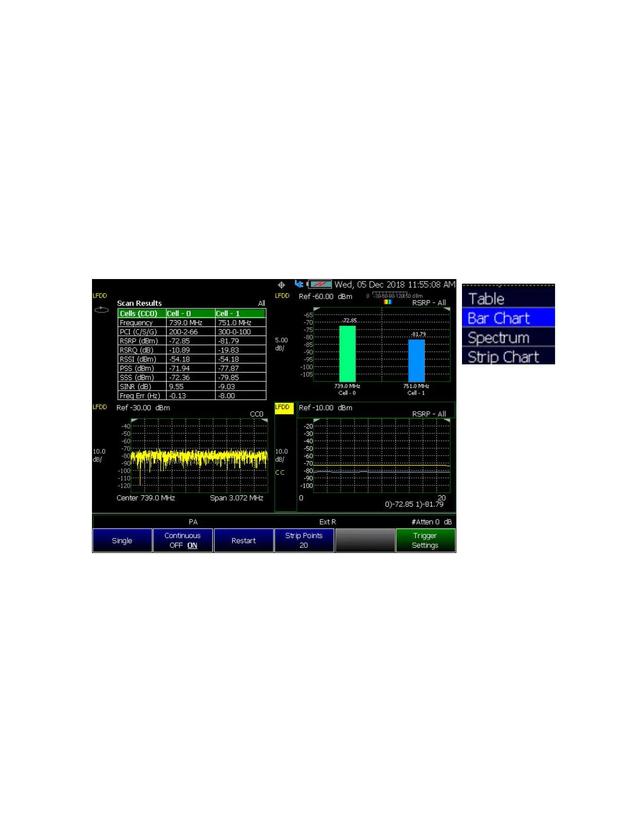— Bar Chart – Vertical power bar graph of selectable cell scan result metric