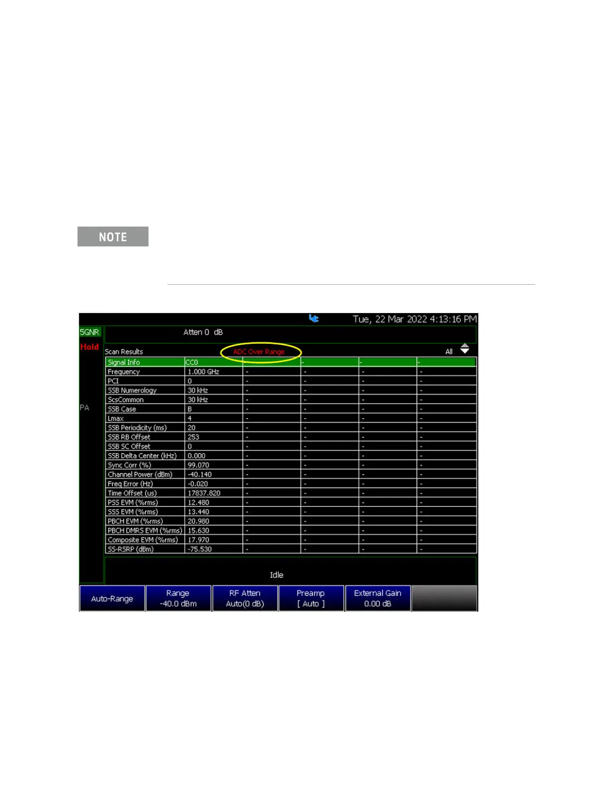 Figure 13-34 OTA 5G NR Signal Before Auto-Range – Table