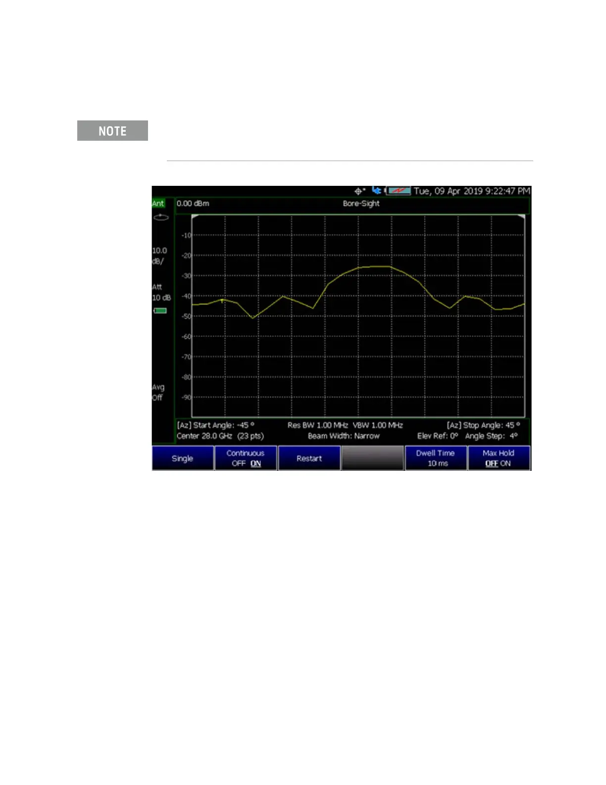 Figure 14-8 Bore-Site Measurement with CW RF (Dwell Time=10 ms, Max Hold=OFF)