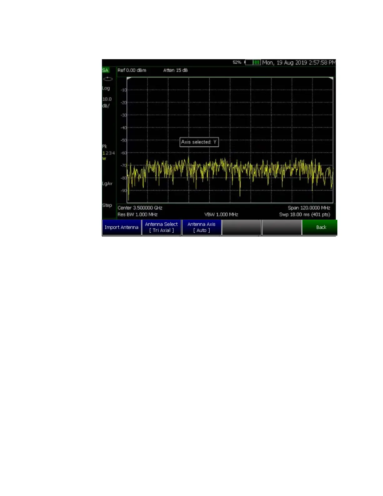 Figure 15-3 Example Verifying the Triaxial Values – Axis Y is Displayed