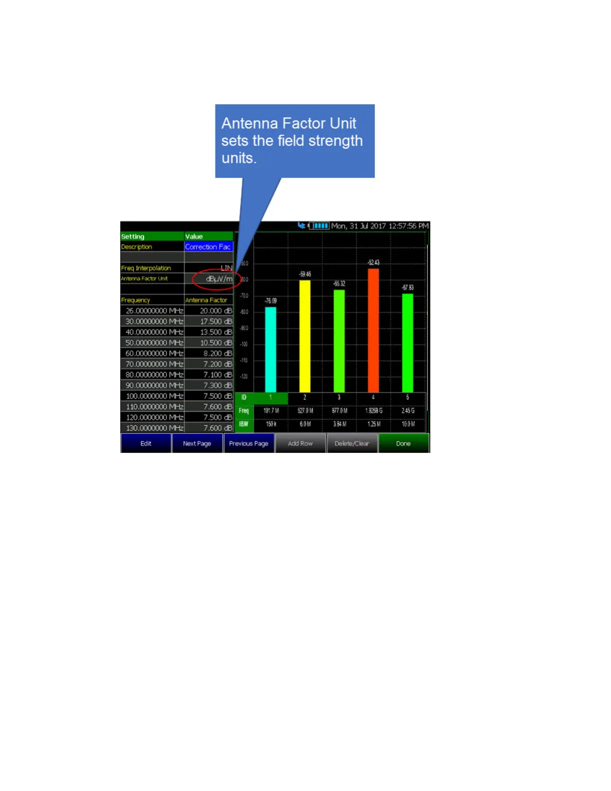 Figure 28-16 Editing Antenna Factor (See also,
