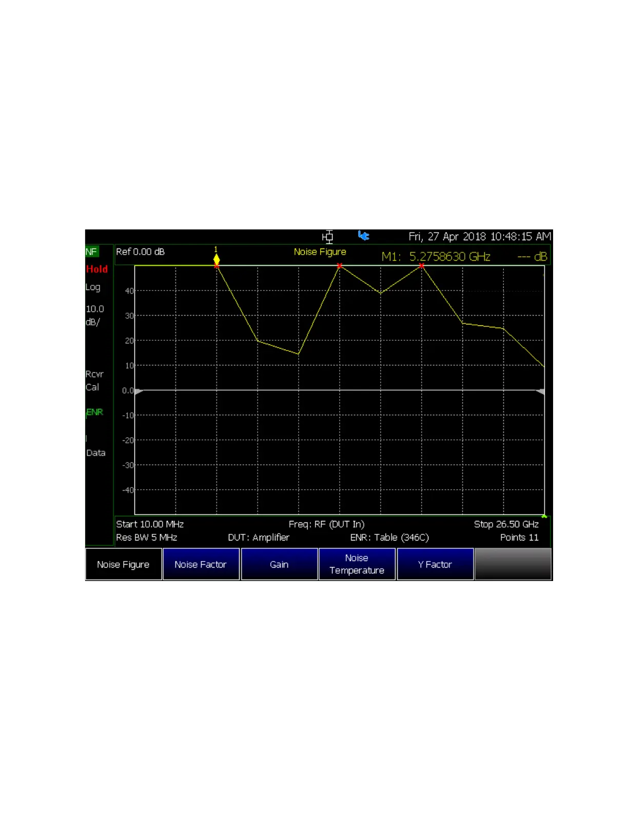 FieldFox’s Noise Figure Option 356 displays the following: