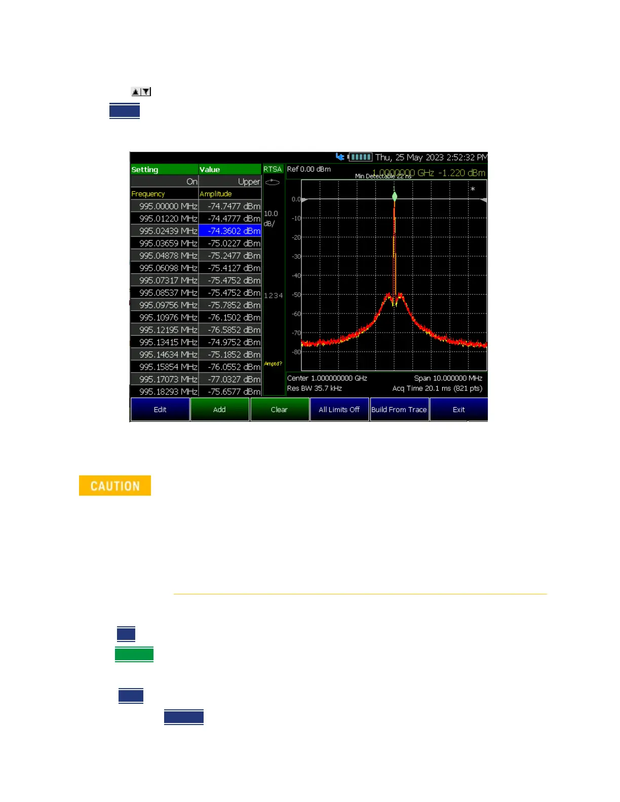 –When using the Spectrogram measurement, Limit lines are only available