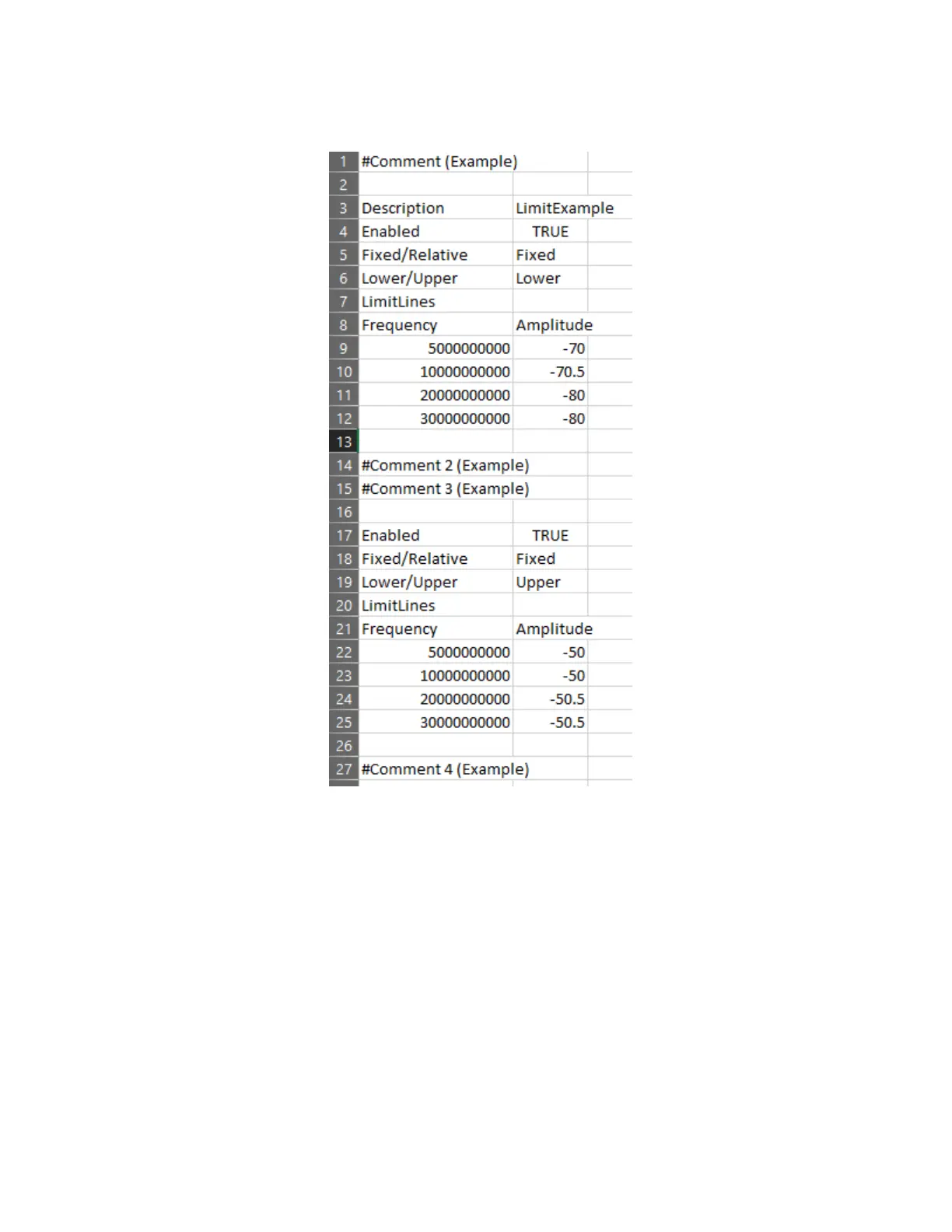 Figure 30-11 Example: Table Limit Line Formatting in actually LimitExample.csv