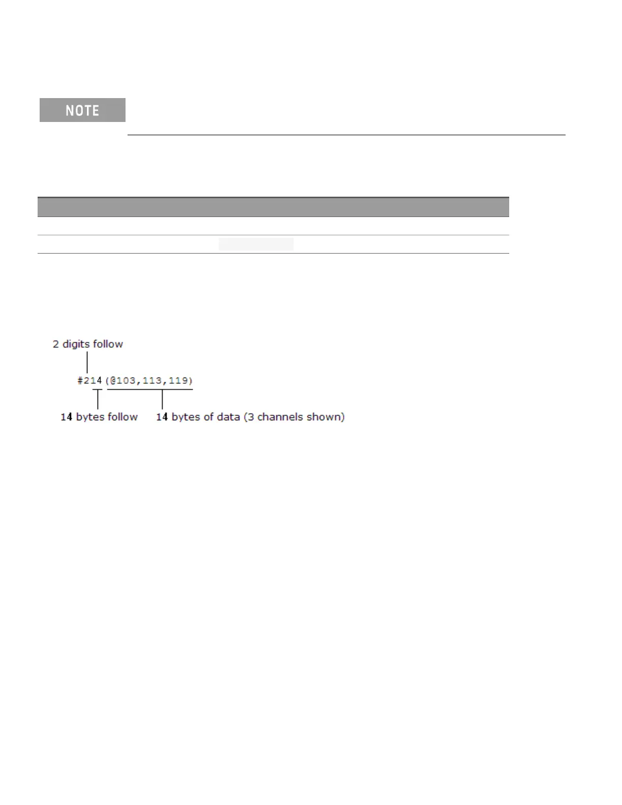 The query returns a series of channel numbers in definite-length block format. The syntax is a pound sign (#) fol-