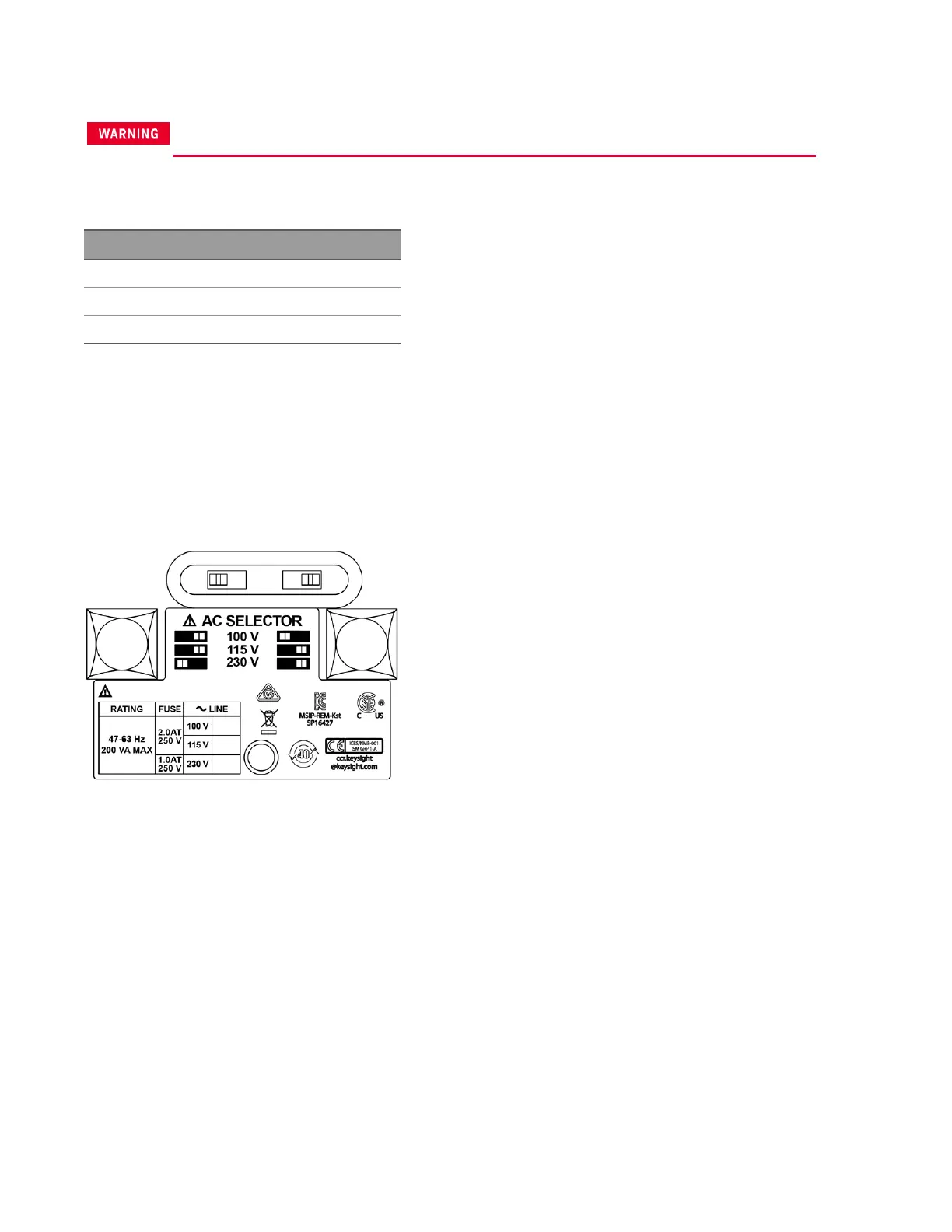 Input power for E36102B, E36103B, E36104B, E36105B, and E36106B is 200 VA maximum.