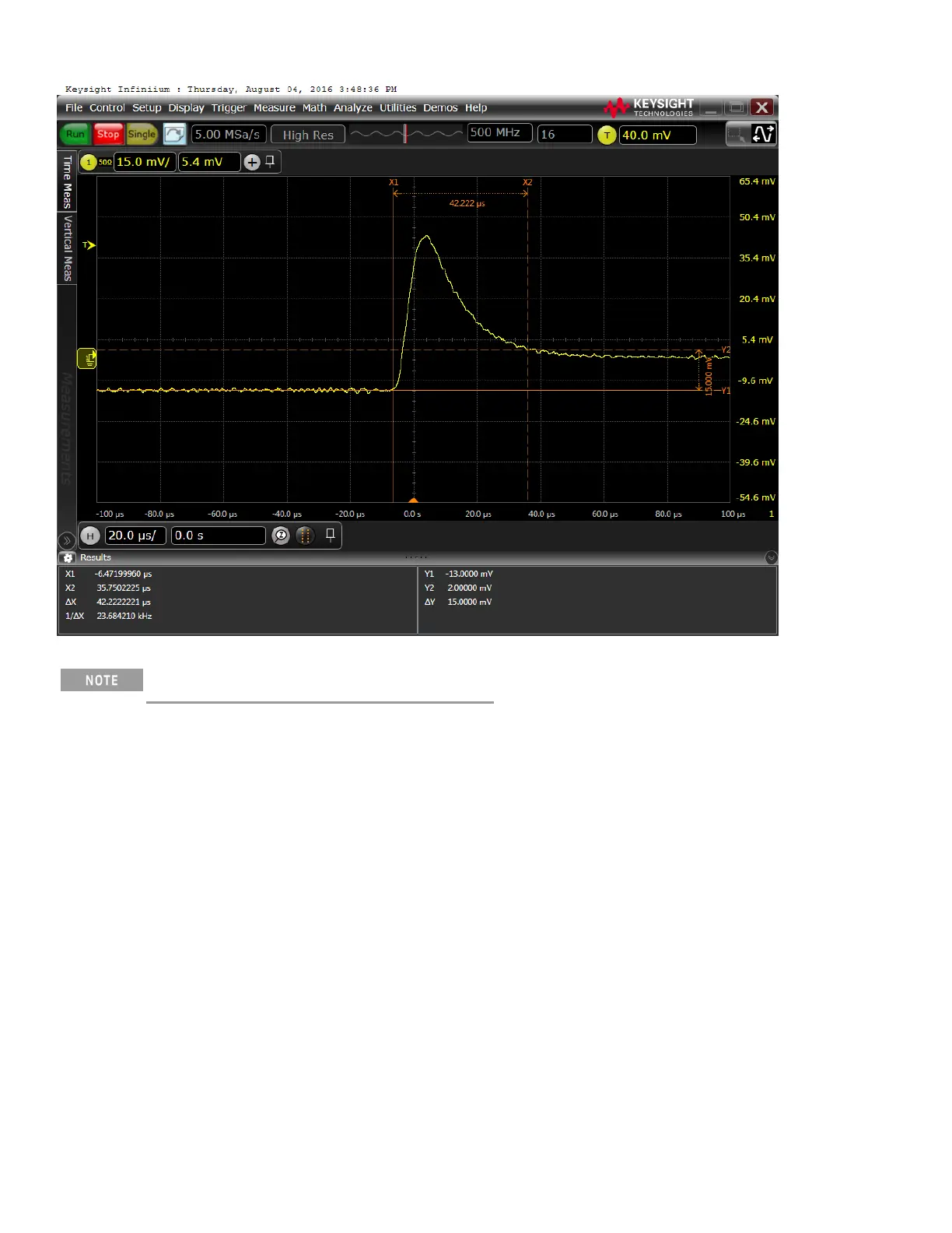 The oscilloscope cursors X1 and X2 represent t1 and t2.