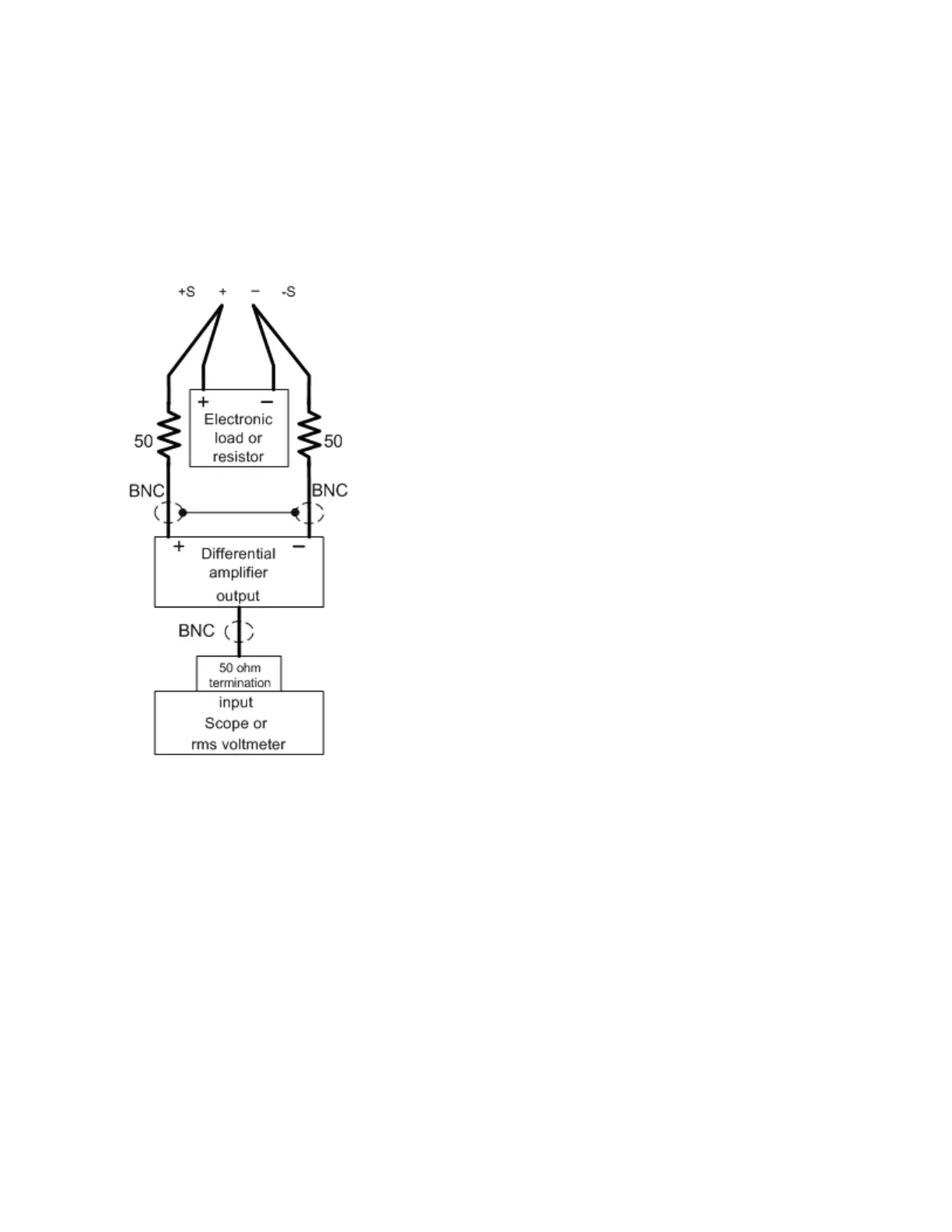Connect a load resistor or electronic load, differential amplifier, and an oscilloscope (AC coupled) to the output