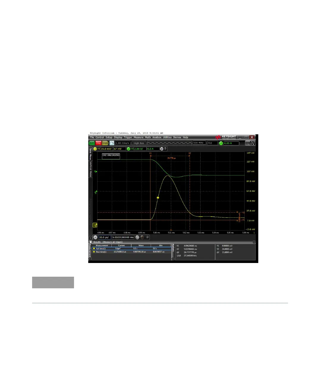 8 Adjust the oscilloscope to display transients as shown below. Note that the