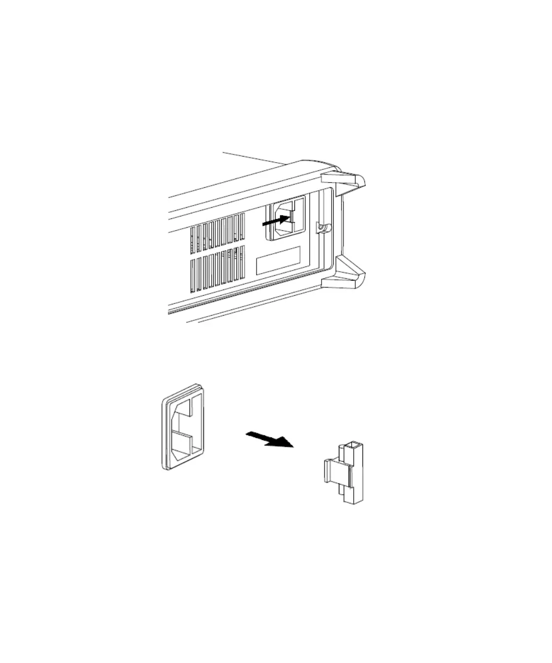 1 Remove the power cord, and remove the fuse-holder assembly from the rear