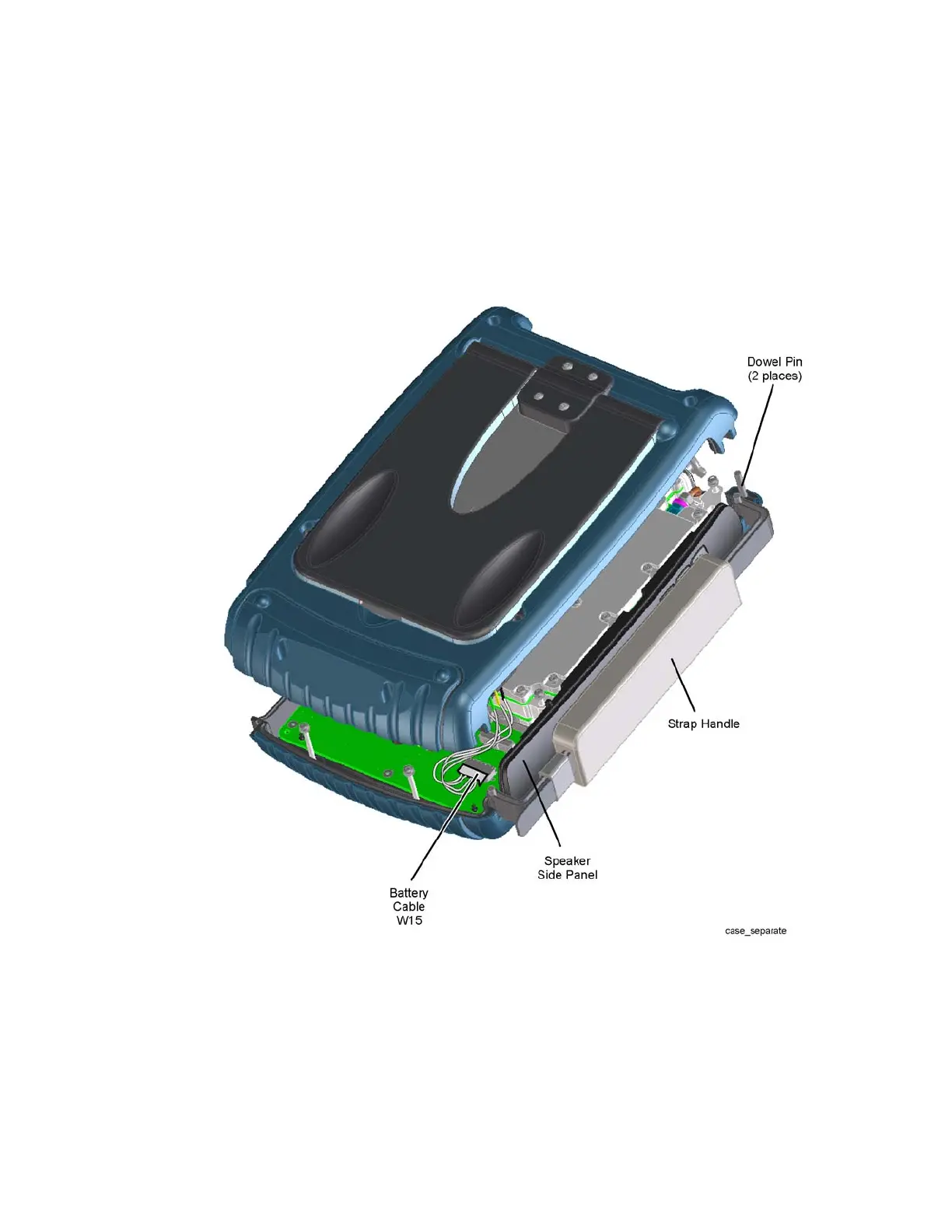 Figure 7-7, to allow access to the speaker side panel and strap handle.