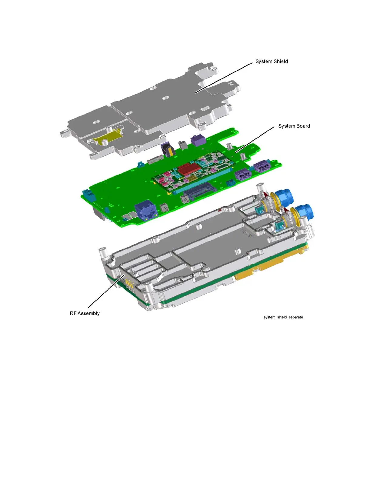 Figure 7-36 RF Assembly Separation from System Board and Shield - N995xA, N996xA