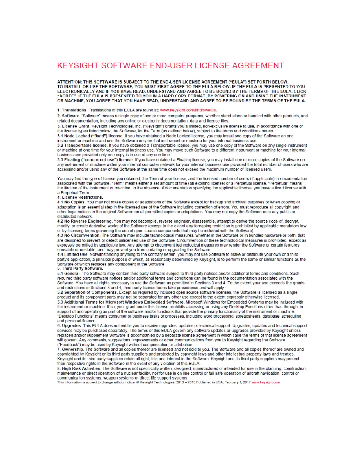 Keysight Software End-User Licensing Agreement (EULA)