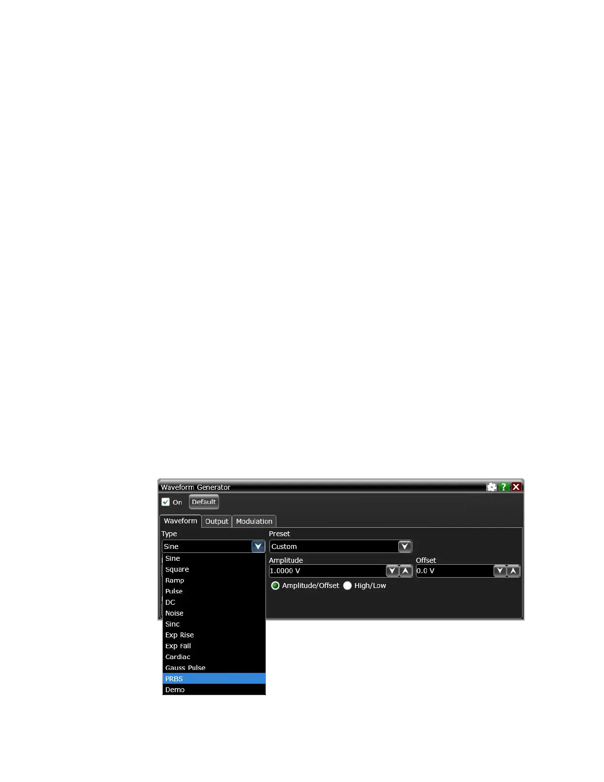 choose Setup > Waveform Generator... to open the Waveform Generator dialog box.