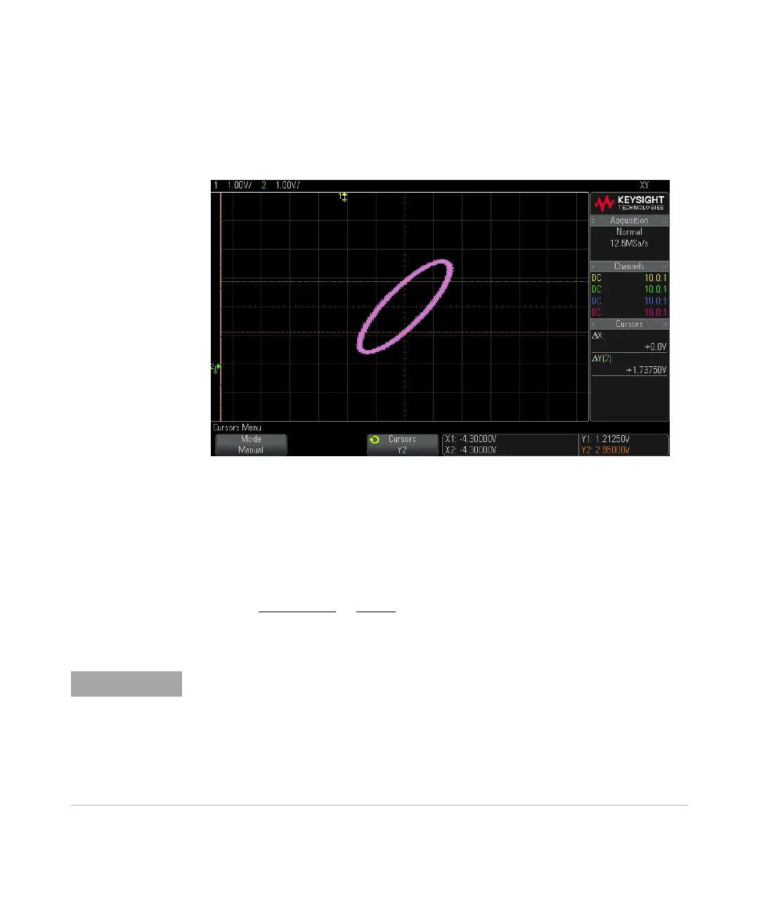 6 Move the Y1 and Y2 cursors to the intersection of the signal and the Y axis.