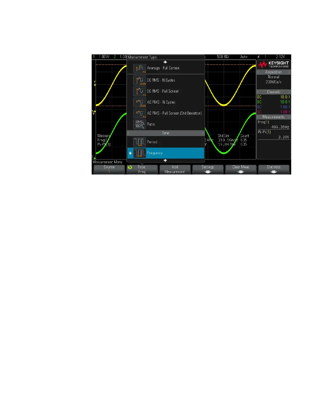 5 Press the Add Measurement softkey or push the Entry knob to display the