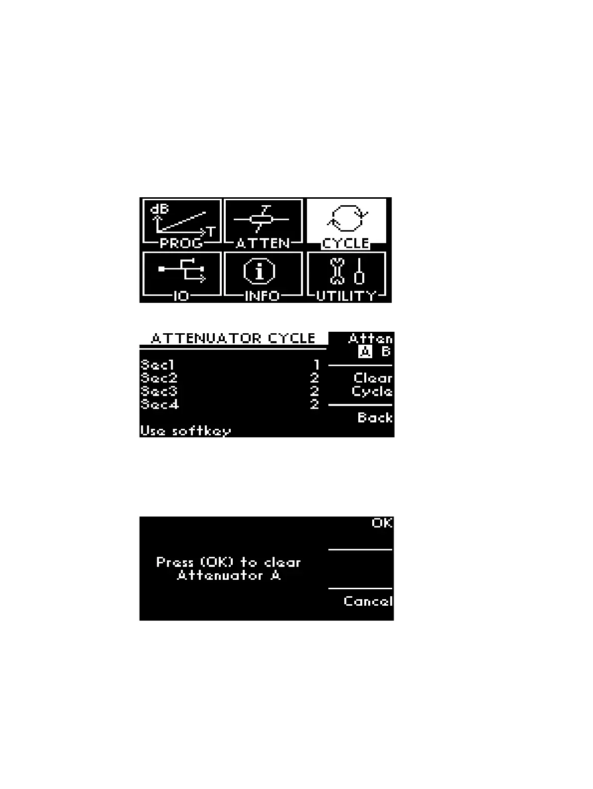 5 A pop-up screen reminds you whether Attenuator A cycles needs to be clear.