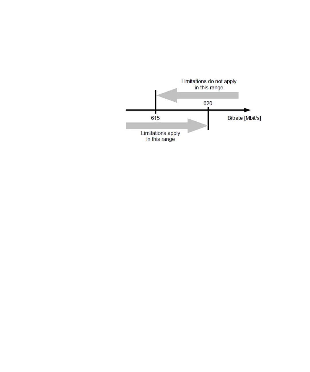The following figure clarifies the behavior in the range between 615 Mbit/s