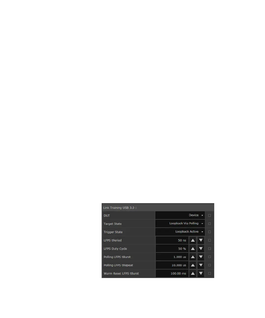 compliance of a USB 3.0 and USB 3.1 DUT. It provides the parameters
