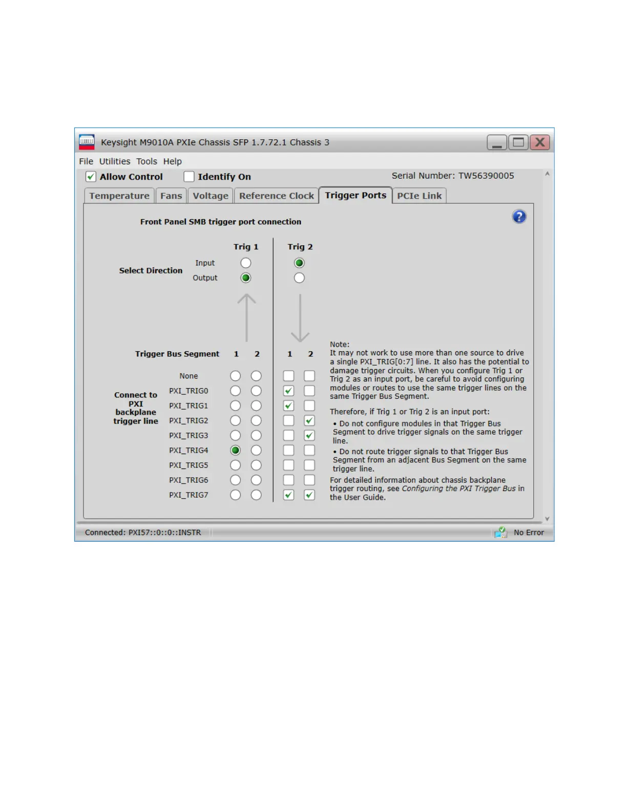 Bus Segment 1 and Trig Port 2 as an Input to multiple PXI_TRIG lines on both
