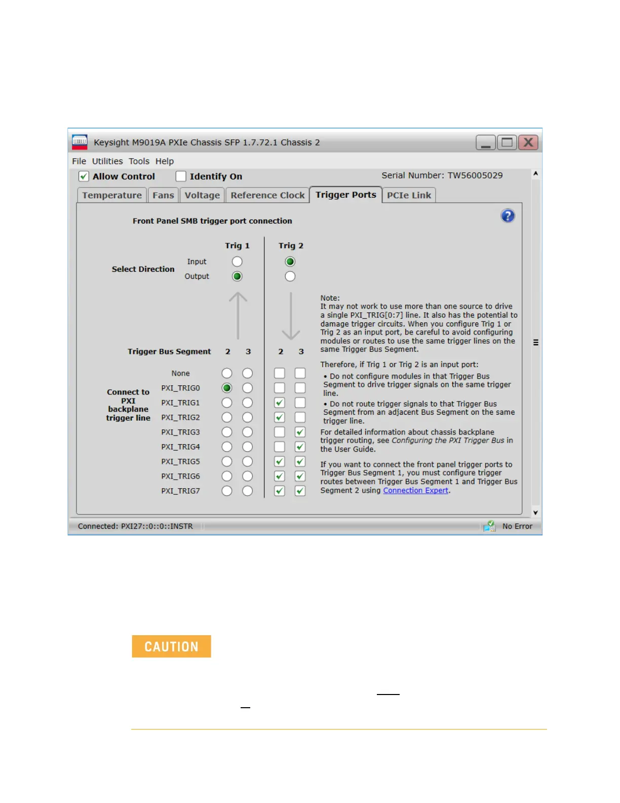 The preceding figure shows Trig Port 1 as an Output from PXI_TRIG0 on Trigger
