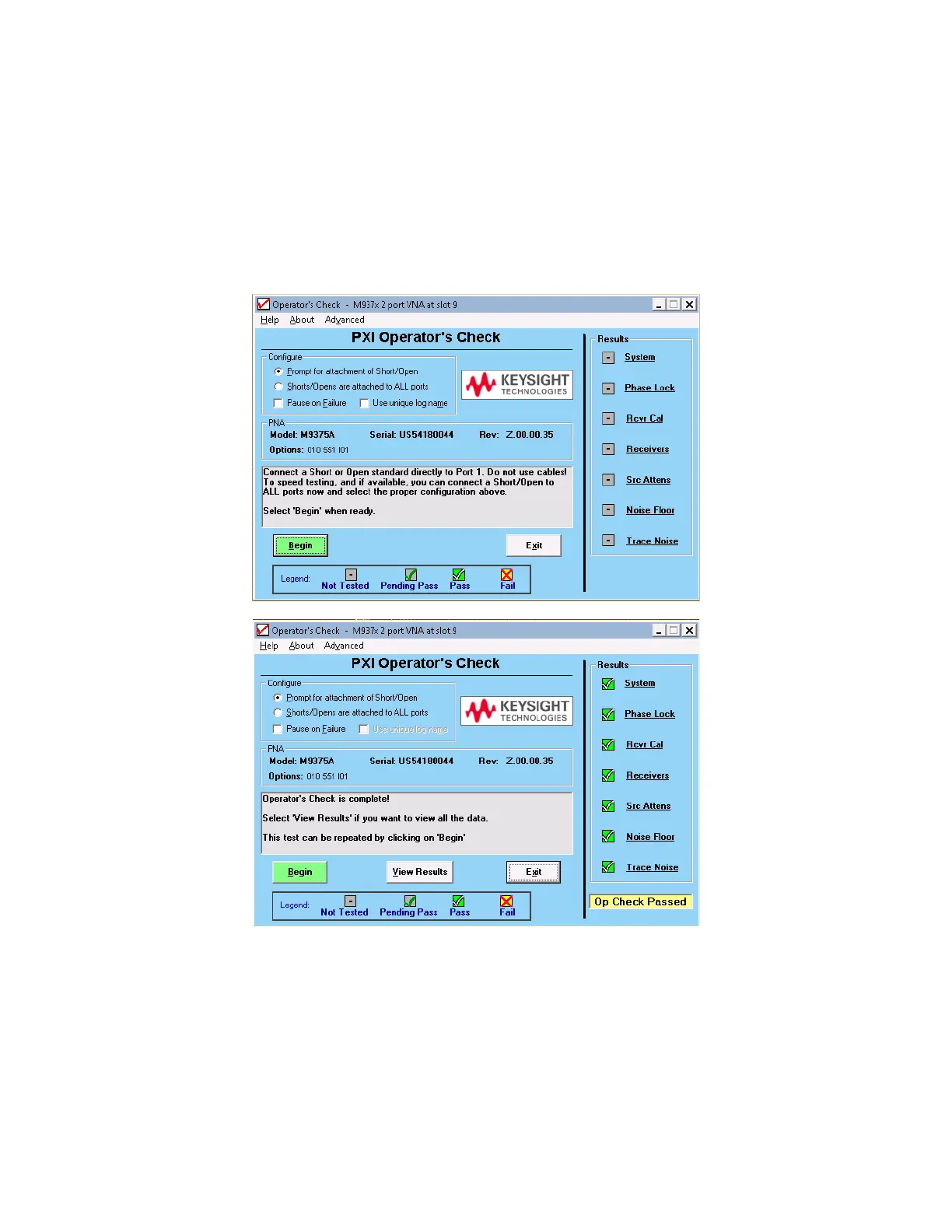 5. The result of the Operator’s Check will be shown as a PASS or FAIL to each
