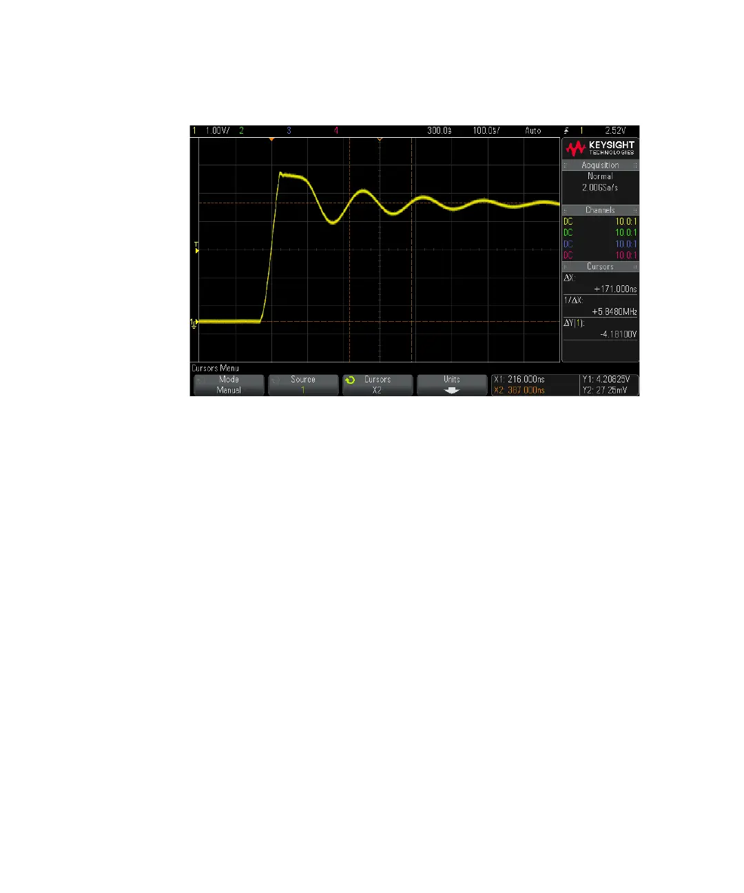 Figure 29 Cursors measure frequency of pulse ringing