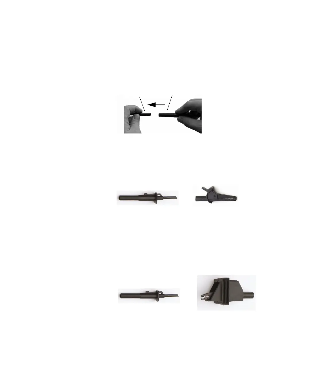 attached by pushing them onto the probe leads as shown below.
