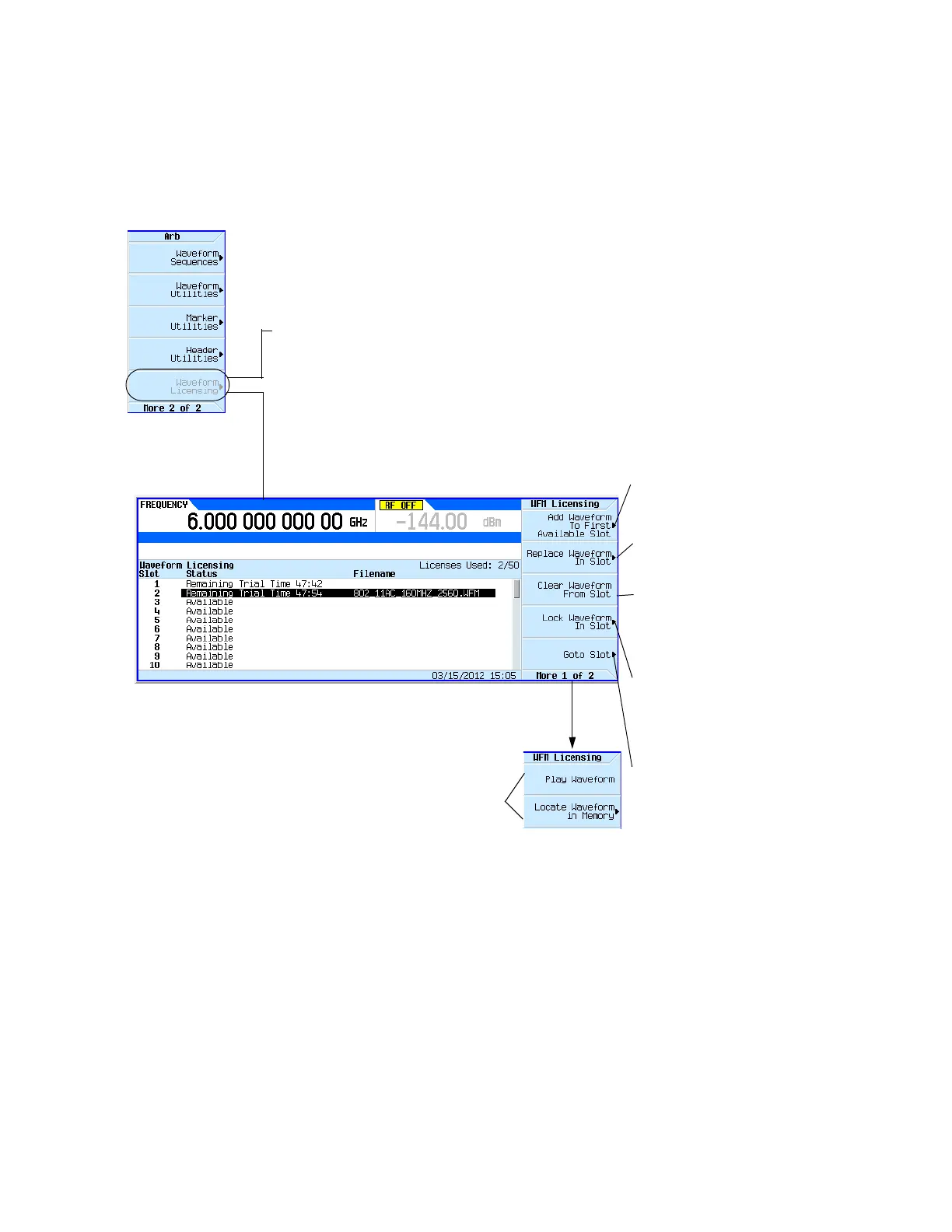 waveform licensing menu selections.