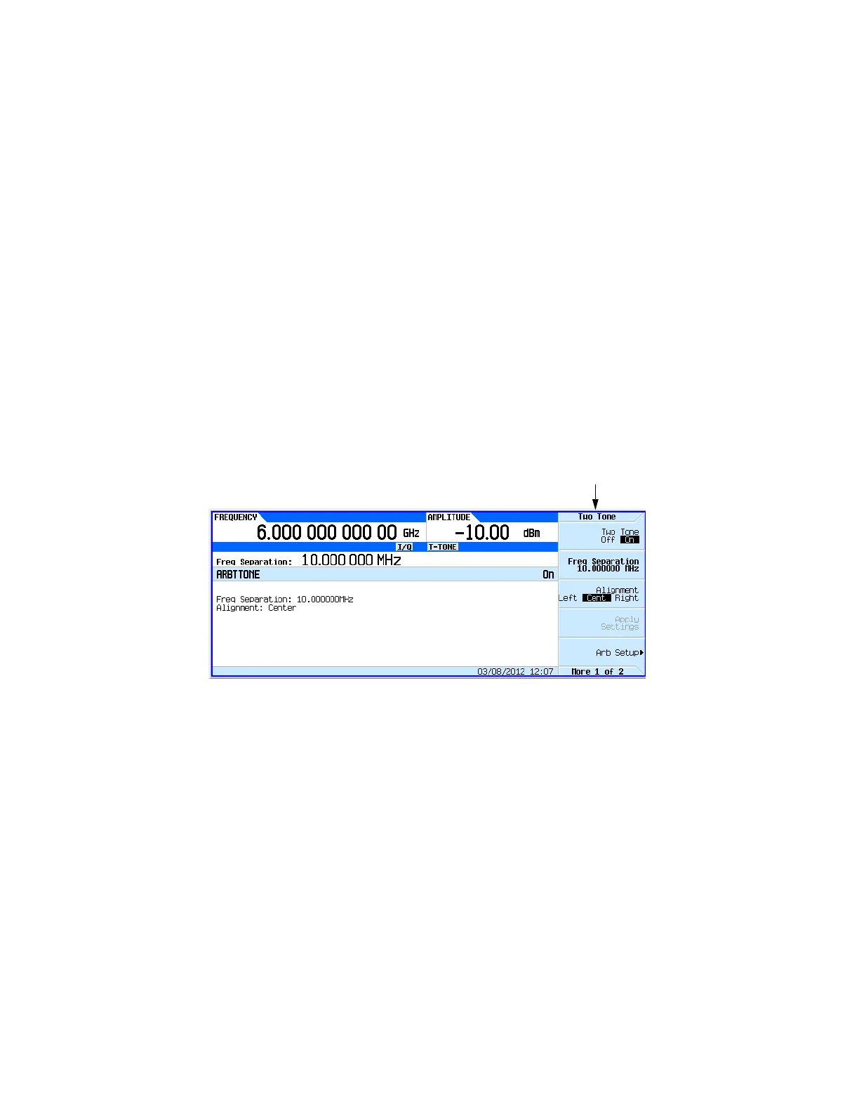 4. Press Mode > More > Two–Tone > Freq Separation > 10 > MHz.